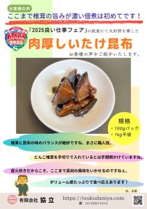 特に「肉厚しいたけ昆布」の試食は大変好評をいただきました。