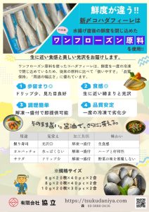 生に近い締まりと光沢を維持しつつ、ドリップの発生を抑えることで、歩留まり・外観品質ともに安定した原料供給が可能です。